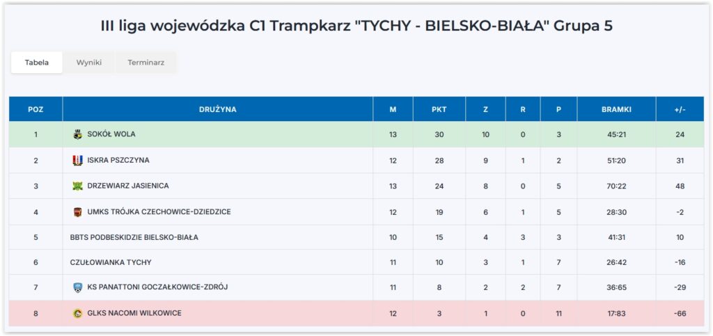 III Liga Wojewódzka Trampkarz starszy C1 grupa Tychy / Bielsko Biała – 14 kolejka