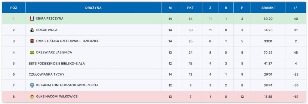 KS Panattoni Goczałkowice Zdrój – Sokół Wola 1:8 (bramki: Nataniel Michura x3, Karol Dziubek x2, Konrad Kołakowski, Kamil Doktor, Mikołaj Piwoń)