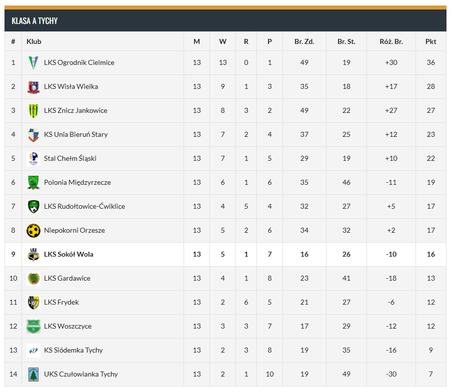 TABELA PO RUNDZIE JESIENNEJ: