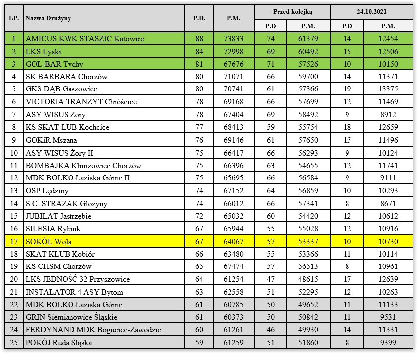 Finalnie w rozgrywkach ligowych drużyny Sokoła Wola zajęły kolejno: