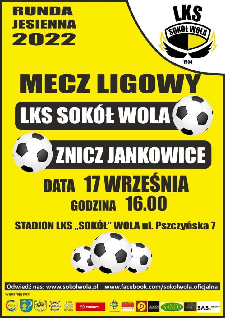 Znicz Jankowice – SOKÓŁ WOLA 0:3 (bramki – Mariusz Jarnot, Kamil Szwajca, Dawid Hamerla)