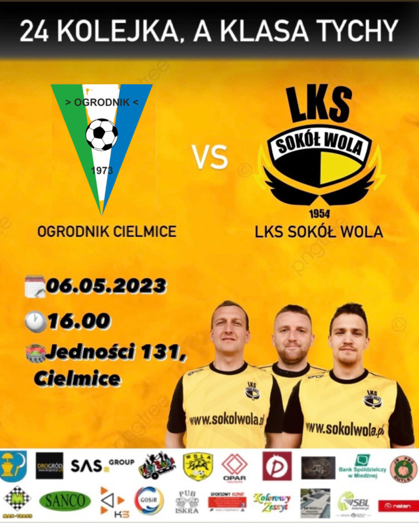 Przed drużyną seniorów bardzo ważny mecz, w pobliskich Cielmicach zmierzymy się z sąsiadem z tabeli drużyną Ogrodnika. Obie ekipy w tabeli dzieli dokładnie jeden punkt stąd też możemy być świadkami ciekawego widowiska. Historia ligowych spotkań pomiędzy Sokołem a Ogrodnikiem jest długa i niesłychanie ciekawa, a starsi fani na pewno pamiętają wiele zaciętych spotkań pomiędzy obiema drużynami.
