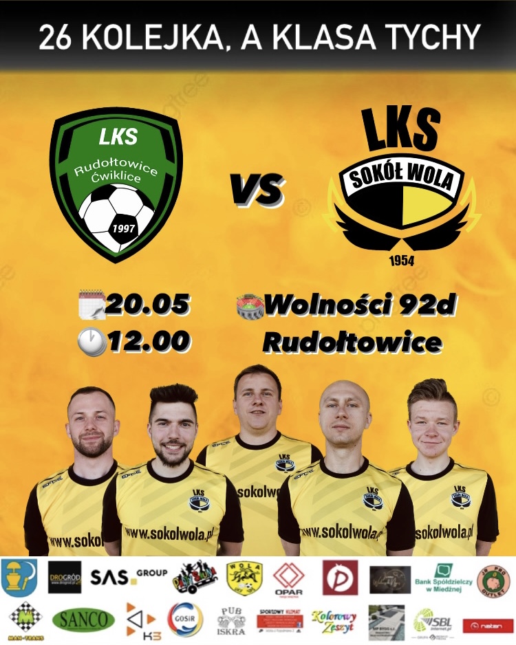 LKS Rudołtowice-Ćwiklice – SOKÓŁ WOLA 0:8 (bramki – Kacper Kudyba x3, Jakub Szmidt x2, Adrian Sosna, Tomasz Śmieja, Mateusz Lendzion)